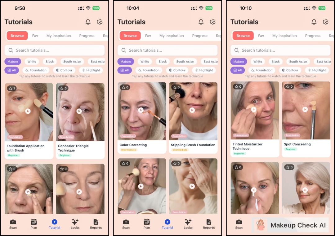 The AI makeup app now offers over 100 video tutorials with real-time technique feedback, allowing users to learn everything from basic foundation application to advanced concealer techniques for hyperpigmentation and other common skin concerns.