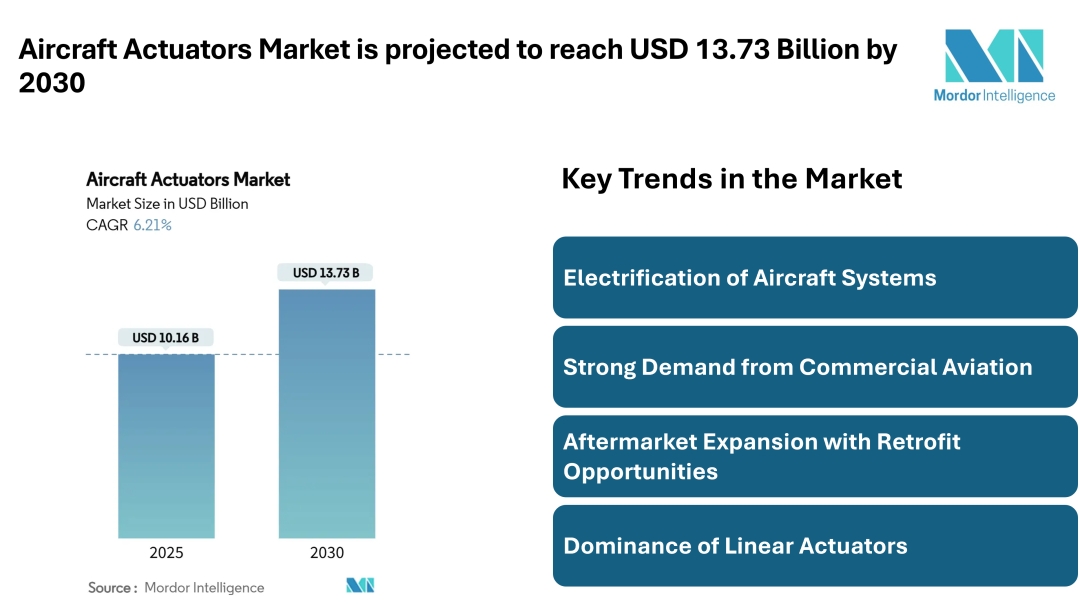 Strong Demand from Commercial Aviation: Commercial airlines remain the largest consumers of actuators, with backlogs in single-aisle programs like the Boeing 737 MAX and Airbus A320neo ensuring steady demand. These actuators are essential for flight-control functions such as ailerons, elevators, rudders, and flaps. The market benefits from continuous fleet expansion, rising air passenger traffic, and the replacement of aging aircraft with more efficient models.