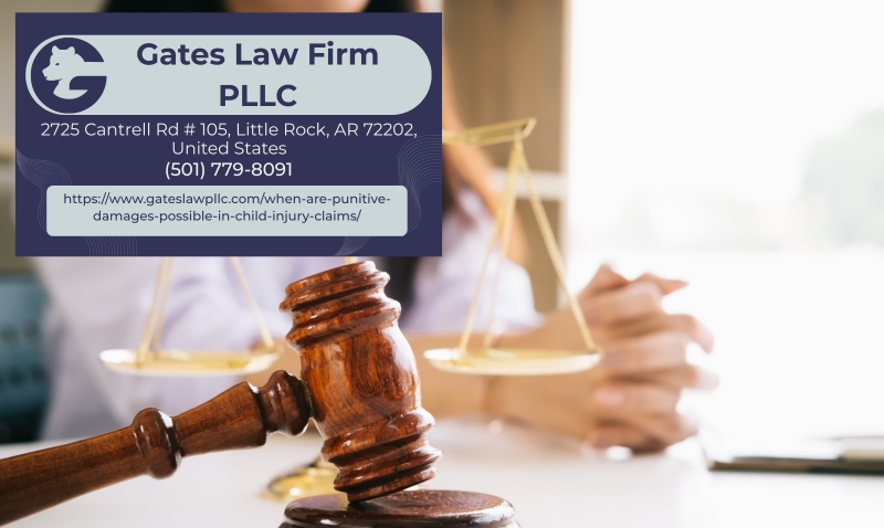 Little Rock, Arkansas — Joseph Gates, an Arkansas child injury claims lawyer and founder of Gates Law Firm, PLLC (https://www.gateslawpllc.com/when-are-punitive-damages-possible-in-child-injury-claims/), is sharing clear guidance on when punitive damages may be available in child injury matters arising across the state. Drawing from Arkansas Code § 16-55-206 and relevant case law, Gates outlines the circumstances under which courts may consider punitive damages in addition to compensatory relief, with emphasis on conduct involving malice, intentional harm, or reckless disregard for child safety.