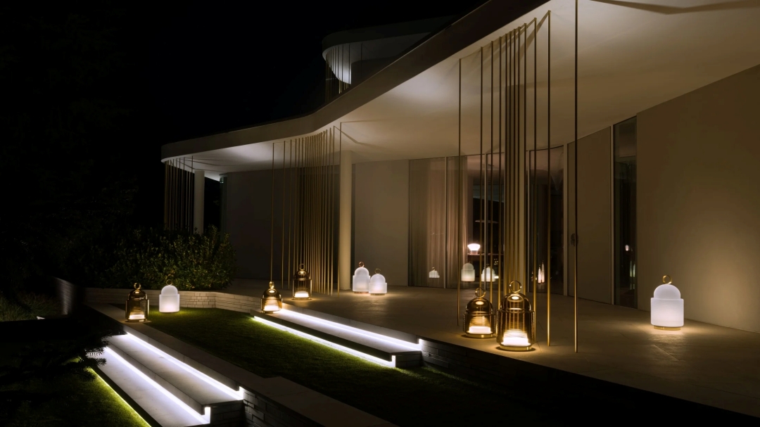Collections including Dome Nomad, Sfera Portable, Knot Battery, and Ivy Battery deliver 8-12 hours of illumination on a single charge, with handblown glass shades designed to create warm ambient glow rather than direct task lighting. The Knot Battery features a rope handle that allows the luminaire to be carried effortlessly wherever atmosphere is needed – from outdoor dining to late-evening garden walks.