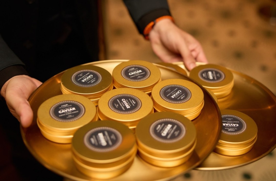 The official caviar unveiling took place at 9:00 PM, marking a rare and unforgettable Art Basel moment.
