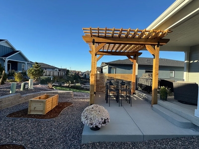Elevate your outdoor living with Denver Patio Masters. This stunning project features one of our custom pergolas, perfectly integrated into a modern patio design to provide shade and architectural beauty. Our team specializes in high-quality craftsmanship and technical precision for all your outdoor structures. Whether you want a retreat for dining or a focal point for your garden, trust our local experts to bring your vision to life with professional results.