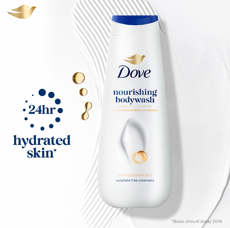 Product example: Moisturizing body washes, such as Dove Deeply Nourishing Body Wash, are designed with NutriumMoisture™ technology and mild cleansers to help the skin retain its natural moisture, leaving it feeling moisturized and healthy-looking after every shower.