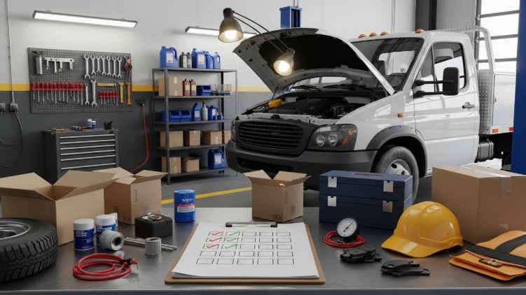 A: Brakes, tires, lights, fluid levels, emergency equipment, and visible leaks. Daily pre-trip inspections are required for safety and compliance. See the maintenance metrics table above for full intervals.
