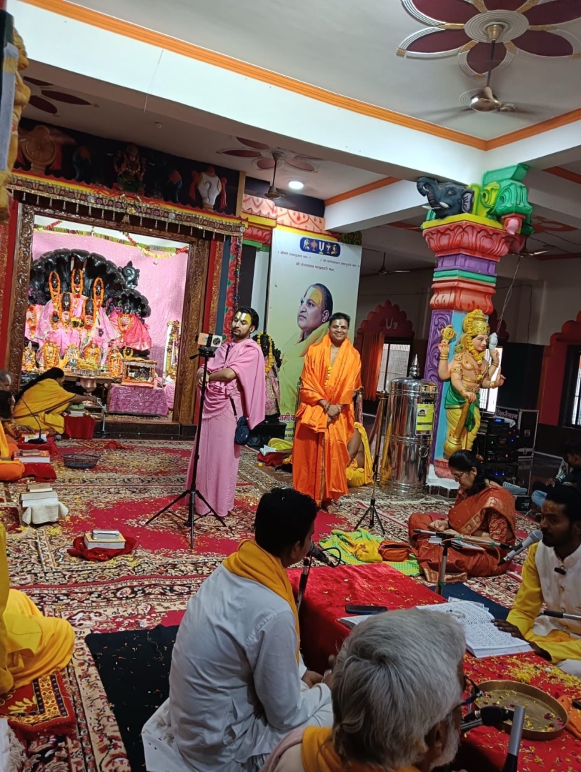 The Diksha and Paramhans ceremony was conducted under the blessings of revered spiritual authorities, including Shree Shree 1008 Shrimad JagadGuru Swami Kureshyacharya Ji Maharaj as Dada Guru and Shree Shree 1008 Dharma Rattan Shrimad JagadGuru Swami Sandeepani Ji Maharaj as Guru, along with the presence of several distinguished saints from multiple sampradayas, which also included a bath in the sacred Saryu River.