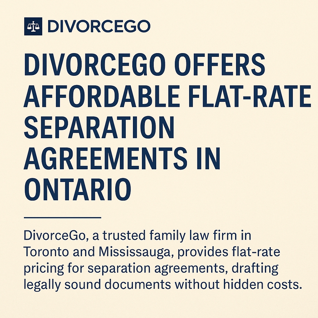 DivorceGo, a trusted family law firm serving Toronto and Mississauga, is making separation agreements more accessible by offering flat-rate pricing for couples seeking clarity and fairness during separation. With a focus on affordability, transparency, and efficiency, DivorceGo provides clients with peace of mind during one of life’s most challenging transitions.