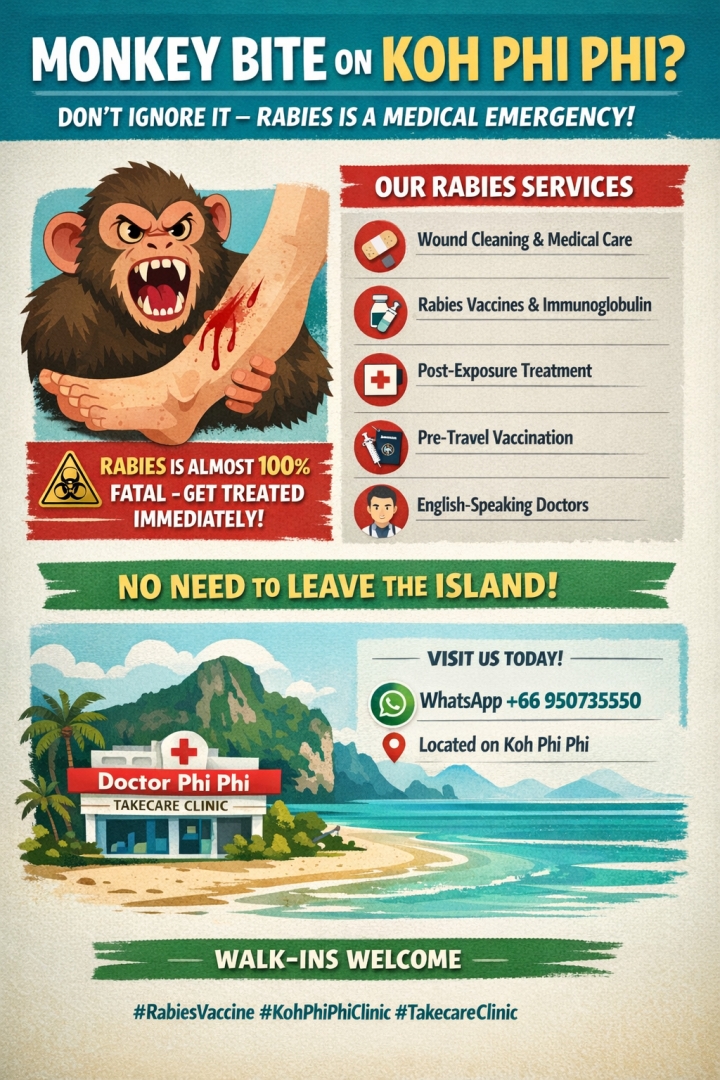 For rabies treatment, monkey bite care, or immediate medical consultation in Koh Phi Phi, contact: