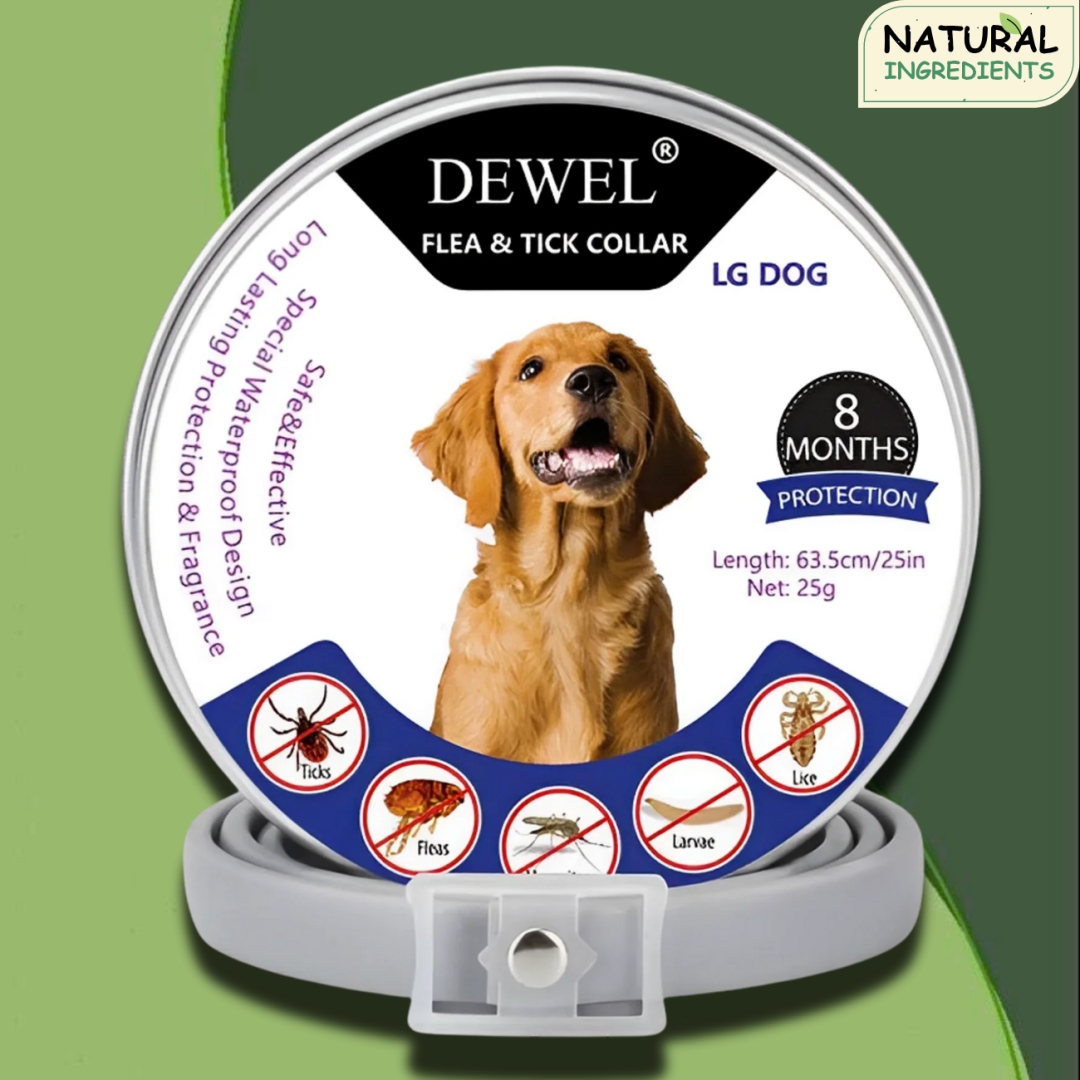 The DEWEL Flea & Tick Collar, available at DEWELPRO.com since May 2019, is one of the plant-based essential oil collars at the center of the 2026 shift. The product uses a calibrated formula of five plant-derived essential oils — cinnamon, eucalyptus, linaloe, lavender, and lemon eucalyptus — embedded in a flexible base and released continuously for eight months from a single application. The collar is water-resistant, adjustable for every size, and safe for puppies from eight weeks of age.