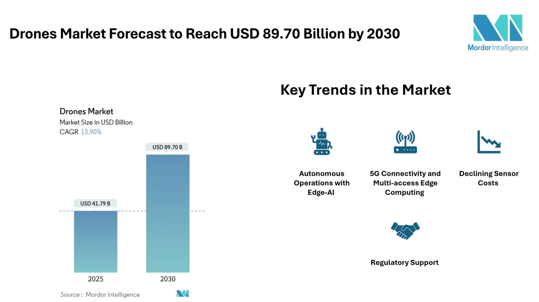 The drones market is set to experience sustained growth over the coming years, driven by technological advancements, supportive regulations, and expanding commercial use cases. Edge-AI integration, 5G connectivity, and lower sensor costs are transforming how drones are deployed across industries, improving efficiency and enabling new applications. With a growing number of sectors recognizing the benefits of drone adoption, the market is poised to see increased investments, innovation, and adoption rates.