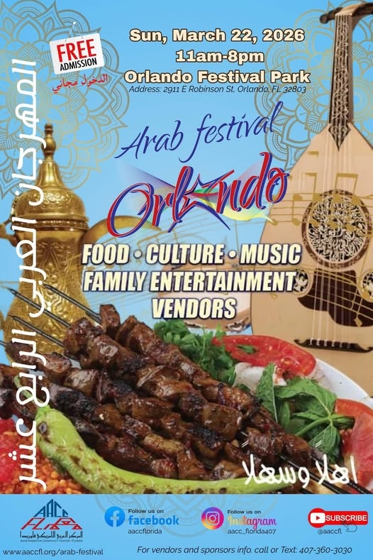- Tickets: eventbrite.com/e/arab-festival-orlando-tickets-1978613668746
