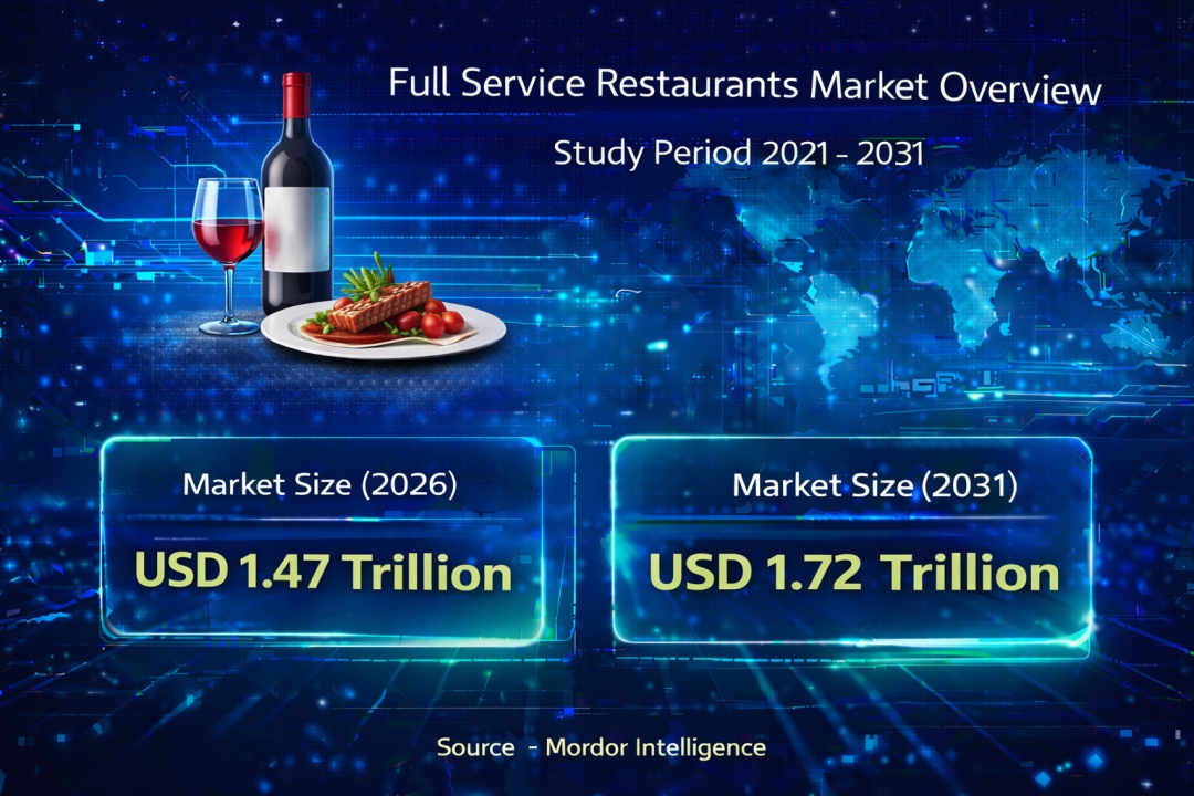 According to a research report by Mordor Intelligence, the Global Full-Service Restaurant (FSR) Market is on a steady growth path, with the market size expected to expand from USD 1.42 trillion in 2025 to USD 1.47 trillion in 2026, and projected to reach USD 1.72 trillion by 2031, reflecting a 3.26% CAGR over the forecast period. This growth is supported by rising disposable incomes, evolving consumer dining preferences, and the integration of digital technologies in restaurant operations.