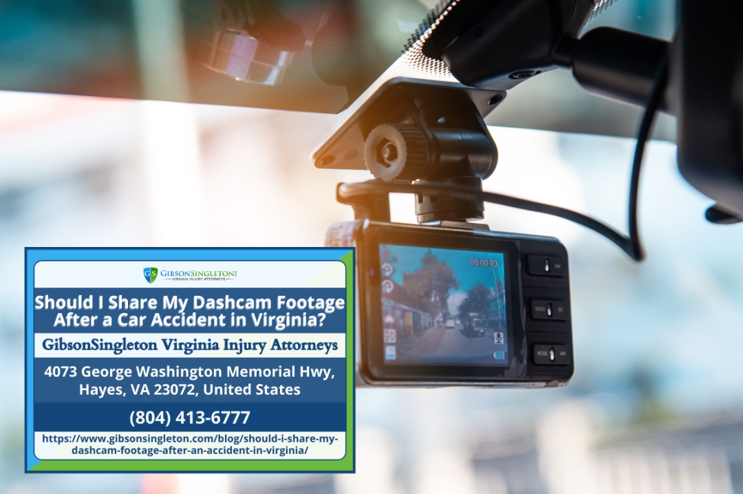 HAYES, VA – Dashcam footage has become an increasingly common form of evidence in Virginia car accident cases, but sharing that footage without legal guidance can either strengthen or destroy an injury claim, depending on what it captures. Gloucester County car accident attorney Ken Gibson of GibsonSingleton Virginia Injury Attorneys (https://www.gibsonsingleton.com/blog/should-i-share-my-dashcam-footage-after-an-accident-in-virginia/) is explaining how Virginia’s contributory negligence rule and evidence laws affect the decision to disclose dashcam recordings after a collision on Route 17 or anywhere across Gloucester County.
