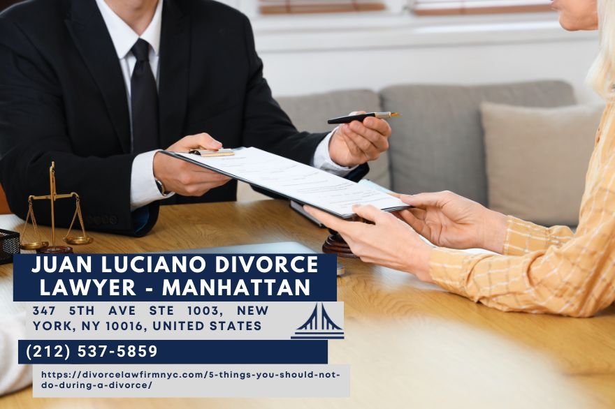 MANHATTAN, NY – Divorce proceedings in New York carry long-term consequences for finances, custody rights, and property ownership, and the decisions individuals make while a case is pending can significantly affect the outcome. Manhattan divorce attorney Juan Luciano of Juan Luciano Divorce Lawyer (https://divorcelawfirmnyc.com/5-things-you-should-not-do-during-a-divorce/) is outlining seven critical mistakes that can undermine a divorce case and offering guidance on how to avoid them.