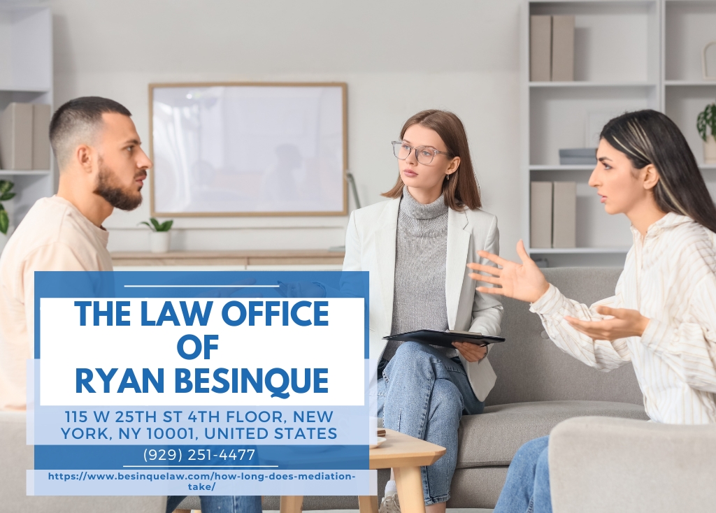 NEW YORK, NY – Couples considering divorce mediation in Manhattan often want to understand how long the process takes before committing to an approach, as the timeline can range from a few weeks to several months depending on the circumstances involved. Manhattan divorce mediation attorney Ryan Besinque of The Law Office of Ryan Besinque (https://www.besinquelaw.com/how-long-does-mediation-take/) is providing guidance on the typical mediation timeline, what factors affect the duration, and how the process compares to contested litigation in New York Supreme Court.