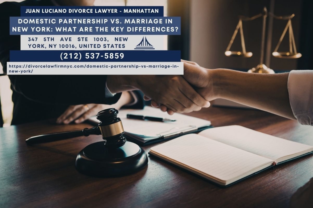 NEW YORK, NY – Couples in New York City face an important legal decision when choosing between a domestic partnership and marriage, as the two relationship structures carry significantly different rights, benefits, and legal consequences at both the city and federal levels. Manhattan family law attorney Juan Luciano of Juan Luciano Divorce Lawyer (https://divorcelawfirmnyc.com/domestic-partnership-vs-marriage-in-new-york/) is explaining the key distinctions to help couples throughout Manhattan and New York City make informed decisions about their legal relationships.