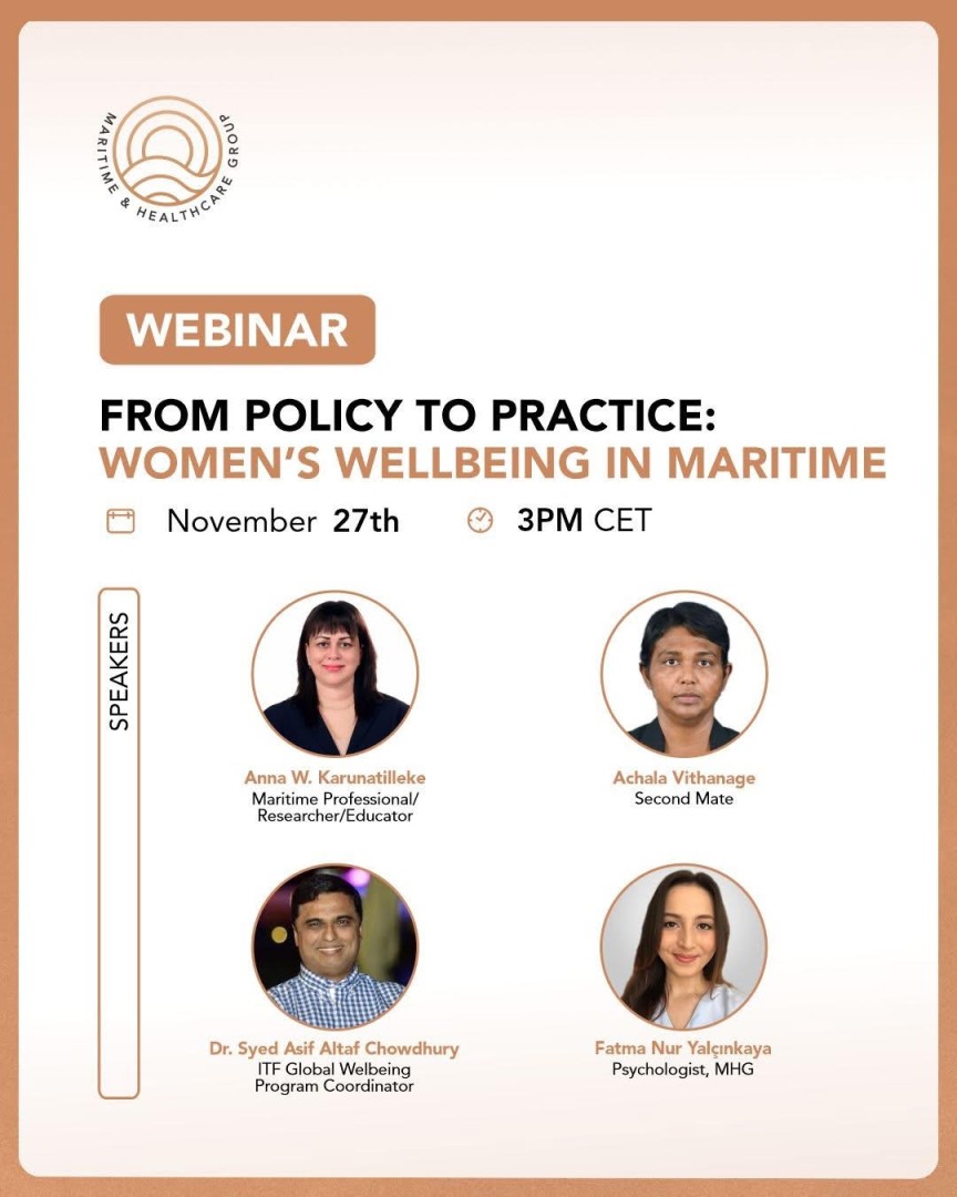 BERLIN, Germany, 19 November 2025 – Maritime & Healthcare Group (MHG), a leading organization dedicated to seafarer wellbeing, will host a landmark webinar on 27 November 2025, at 15:00 CET, titled “From Policy to Practice: Women’s Wellbeing in Maritime.”