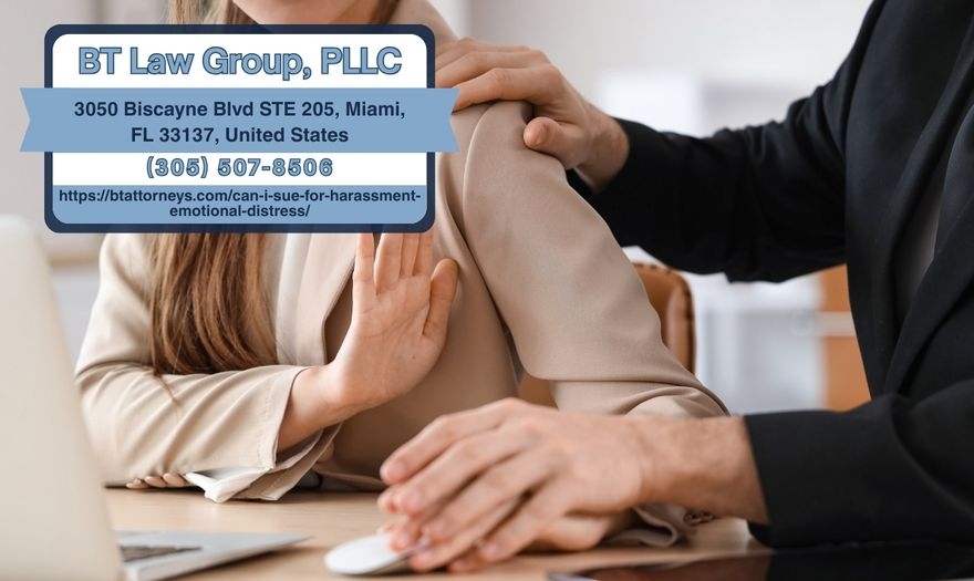 MIAMI, FL – Employees who have experienced workplace harassment may be entitled to compensatory damages for emotional suffering under both federal and Florida law, but the path to filing a lawsuit involves specific procedural requirements and strict deadlines that must be met to preserve the right to recover. Miami employment attorney Jason D. Berkowitz of BT Law Group, PLLC (https://btattorneys.com/can-i-sue-for-harassment-emotional-distress/) is detailing the legal requirements for pursuing a harassment claim, how emotional distress damages work, and the steps required to bring a case to court.