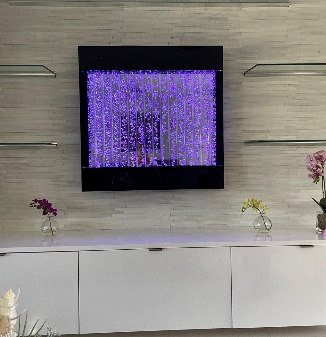 With over 40 years of expertise, Midwest Tropical continues to lead the market in creating innovative water features. The bubble wall is one of the most dynamic products in their portfolio. Designed to be both functional and decorative, these walls use controlled airflow and LED lighting to send streams of bubbles rising within a sealed acrylic panel. The result is a captivating kinetic display that transforms any wall into a living piece of art.