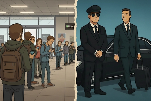 Rather than competing directly with rideshare services, MNMRiDEZ operates outside of their core value proposition. While companies like Uber dominate the on-demand market, they often fail to meet the demanding standards of corporate clients: