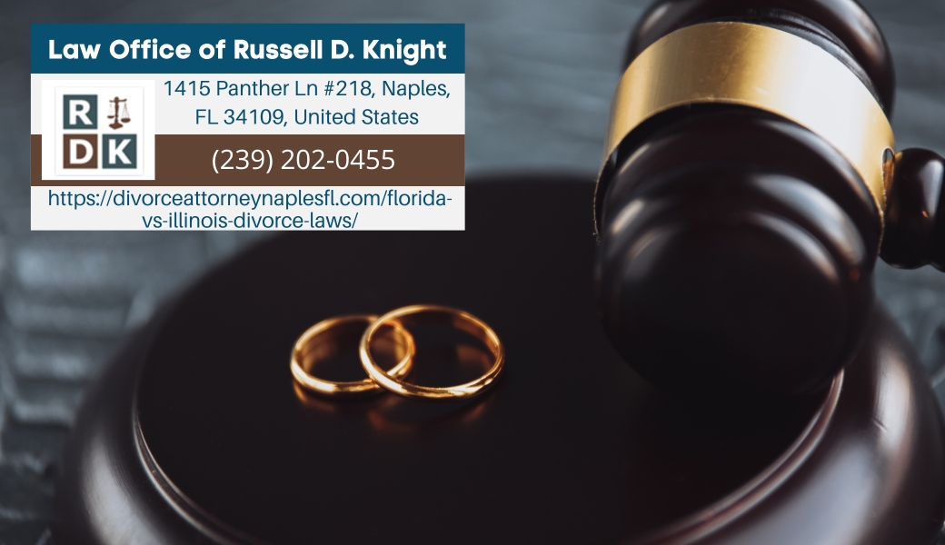 NAPLES, FL – Individuals with residences or connections in both Florida and Illinois face critical decisions when initiating a marriage dissolution, as the chosen jurisdiction can significantly impact the financial and custodial outcomes. Naples divorce attorney Russell Knight of the Law Office of Russell Knight (https://divorceattorneynaplesfl.com/florida-vs-illinois-divorce-laws/) outlines the complex legal differences between the two states to help spouses understand where to properly file for divorce to protect their long-term interests.