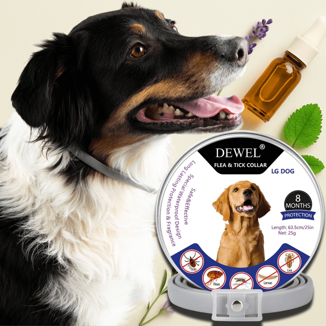 DEWEL™ 8‑Month Natural Flea & Tick Collar for Dogs (Safe for Puppies (8 Weeks+), Small, Medium & Large Dogs | Adjustable Fit for All Breeds) — Available at DEWELPRO.com