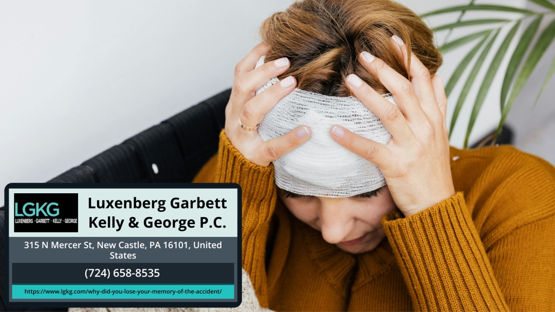 NEW CASTLE, PA – Memory loss following a car accident in Pennsylvania is more common than many crash victims realize, often stemming from a traumatic brain injury, a concussion, or the brain’s natural stress response during impact. New Castle traumatic brain injury attorney Lawrence M. Kelly of Luxenberg Garbett Kelly & George P.C. (https://www.lgkg.com/why-did-you-lose-your-memory-of-the-accident/) explains why memory gaps occur after a collision and how they may affect a personal injury claim.