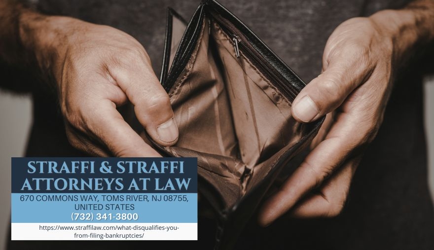 TOMS RIVER, NJ – Not everyone who seeks bankruptcy protection in New Jersey qualifies to file, and certain actions can result in case dismissal or denial of discharge even after filing. New Jersey bankruptcy attorney Daniel Straffi, Jr. of Straffi & Straffi Attorneys at Law (https://www.straffilaw.com/what-disqualifies-you-from-filing-bankruptcies/) is outlining the income requirements, waiting periods, and conduct-based factors that can disqualify individuals from bankruptcy relief.