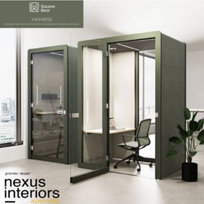 MELBOURNE, AUSTRALIA – Nexus Interiors Australia, a leading name in innovative commercial furniture solutions, is proud to announce the official launch of the HIGHRISE range of acoustic booths. Designed and manufactured in Sydney by the award-winning teams at Square Bear and Thinking Works, the HIGHRISE collection represents a new benchmark in Australian-made office engineering, blending superior acoustic performance with contemporary modular design.