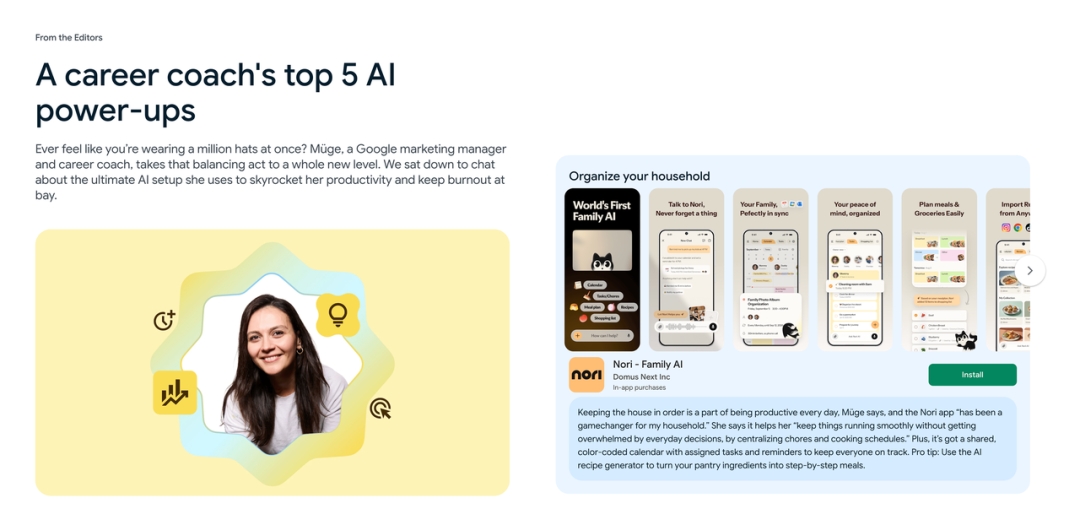 New York, US – Nori, a tech company specializing in AI-powered household ecosystems, today announced its flagship product Nori Family AI has been selected for Google Play’s global editorial Play Story “A career coach’s top 5 AI power-ups” only two months after its official launch on the Google Play Store in February 2026. Recognized for its deep innovation in the Family Organization category, Nori is one of the very few startup products to receive an in-depth interview and featured placement alongside established industry leaders including Tick Tick, Otter AI, Adobe, and Gemini on Google Play’s official Play Story section.
