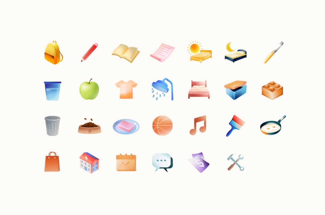 Nori’s cat-shaped IP is inspired by Batman’s butler Alfred, positioned as a professional, reliable, and thoughtful family partner. Combined with life-centric color schemes and illustration design, the interface provides emotional encouragement for task assignment and completion, making household management a warm rather than cold experience.