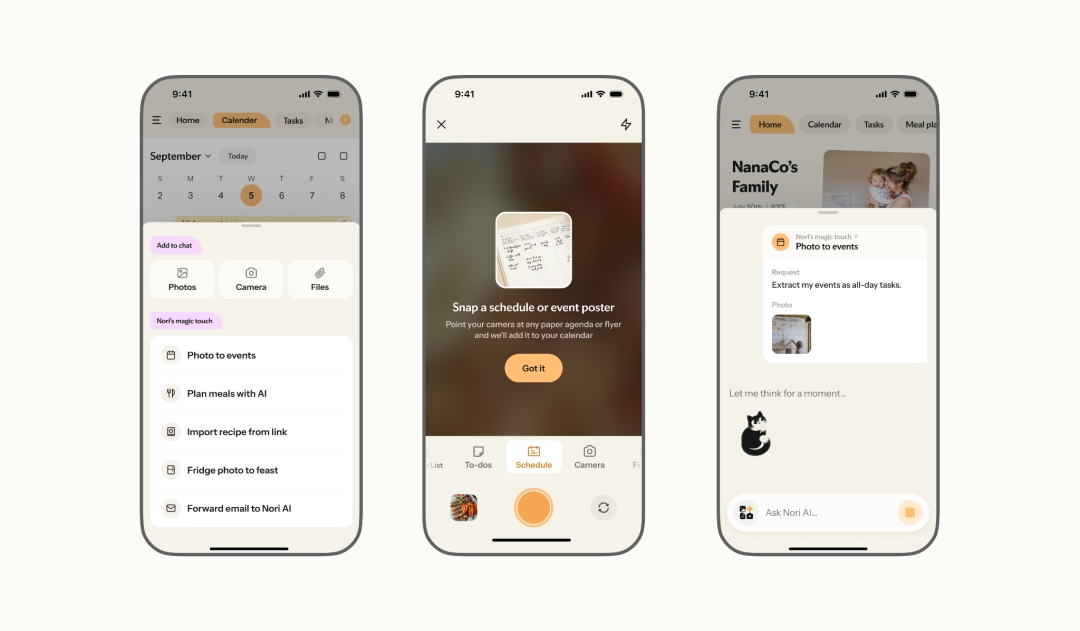 Breaking the functional silos of traditional tools, Nori connects modules according to real life workflows to enable automatic information flow: For example, when a user requests “Plan a week of gluten-free dinners”, Nori not only generates recipes and updates the weekly meal plan, but also automatically adds missing ingredients to the shared shopping list, with direct links to e-commerce platforms for one-click ordering to avoid missed purchases.