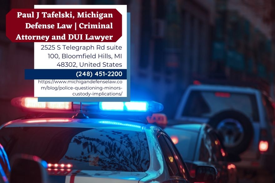 BLOOMFIELD HILLS, MI – Parents in Oakland County and throughout Michigan often do not know that police may question a minor without a parent present, and that domestic violence charges can disrupt custody and parenting time well before any conviction. Oakland County criminal defense attorney Paul J. Tafelski of Michigan Defense Law (https://www.michigandefenselaw.com/blog/police-questioning-minors-custody-implications/) outlines when law enforcement may lawfully question a child without parental consent and how pending domestic violence charges interact with family court proceedings.