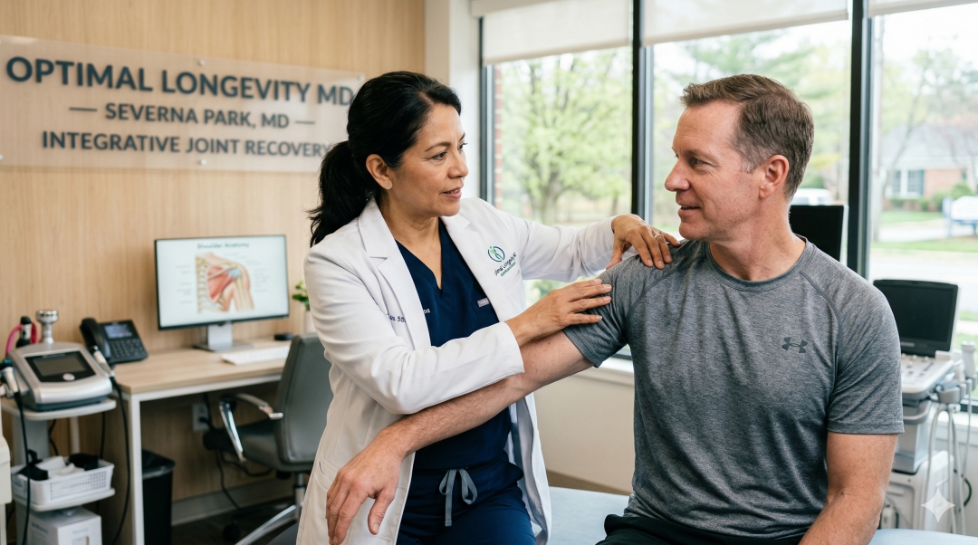 As the population in the Severna Park area remains increasingly active into their middle and later years, the prevalence of degenerative joint issues has risen. For many adults over 40, shoulder pain is not merely a nuisance but a significant barrier to daily activities, exercise, and quality sleep. Optimal Longevity MD’s expanded service offering addresses these challenges by focusing on the root causes of inflammation and mechanical dysfunction rather than simply masking symptoms with temporary fixes.