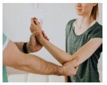 A chiropractor performing an arm adjustment on a patient during a therapy session.