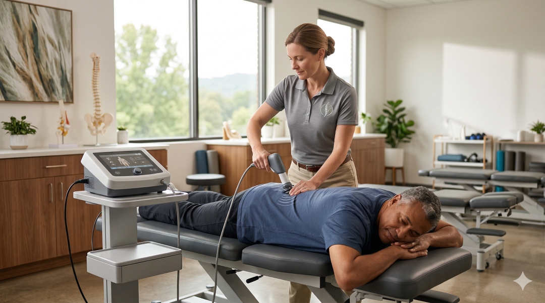 At ProWellness Family Chiropractic, a specialist administers advanced shockwave therapy for back pain to a patient at their Lincolnton, NC, clinic to provide non-invasive relief and restore functional mobility.