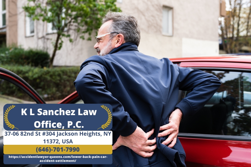 Queens, NY – Keetick L. Sanchez, Esq. of K L Sanchez Law Office (https://accidentlawyer-queens.com/lower-back-pain-car-accident-settlement/) has released practical guidance on evaluating a Lower Back Pain Car Accident Settlement in New York, outlining factors that shape compensation and the critical timelines involved. The resource aims to support injured motorists and families seeking clarity on claim valuation while highlighting the role of a Queens car accident attorney in documenting injuries and pursuing full damages.