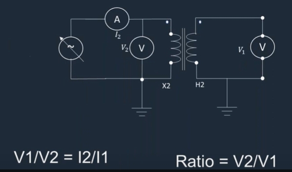 Ratio Test-Voltage Method: A suitable voltage is applied to the secondary winding, and the primary voltage is measured. The turns ratio is calculated as the ratio of the secondary voltage to the measured primary voltage.