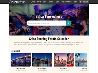 Salsa Vida is a global salsa platform featuring a comprehensive, human-verified event calendar, multilingual guides (English, Spanish, Japanese, and German), the largest listing of Latin dance festivals on the web, expert editorial, and free tools for dancers such as TuneTempo. The platform is built by dancers for dancers, with a focus on accuracy, usability, and community.