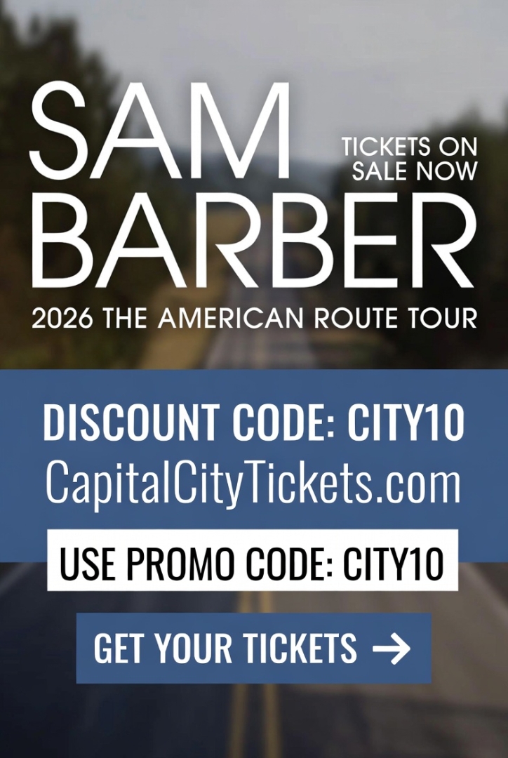 Sam Barber’s The American Route Tour is shaping up to be a defining run for this breakout artist—full of raw emotion, big singalongs, and pure country heart. Skip the high prices and head to CapitalCityTickets.com today. Apply CITY10, lock in discounted tickets, and join the road trip for live music magic. Spots are going quick—don’t miss out!