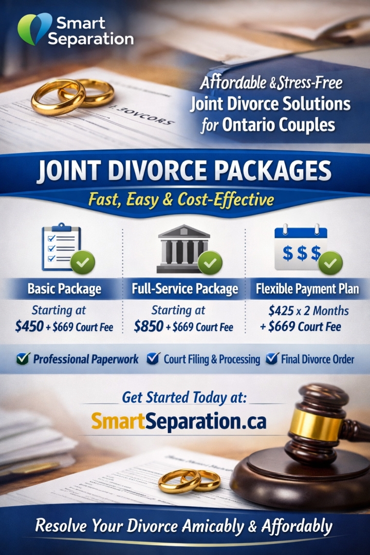 For more information about Joint Divorce Packages or to book a consultation, visit https://smartseparation.ca/joint-divorce-packages/.