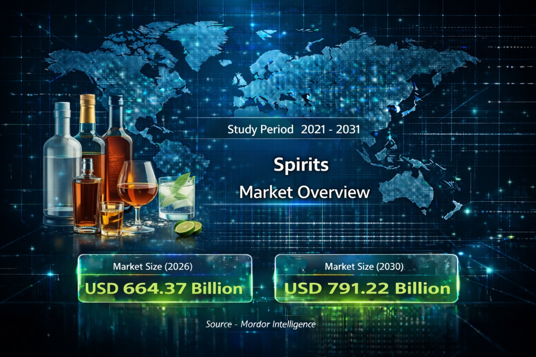 The global spirits market continues to show steady expansion, reflecting changing consumer preferences and evolving drinking habits across regions. According to a research report by Mordor Intelligence, the spirits market size was valued at USD 641.53 billion in 2025 and is estimated to grow to USD 664.37 billion in 2026, reaching USD 791.22 billion by 2031, registering a CAGR of 3.56% during the forecast period. This spirits market growth is supported by increasing interest in premium beverages, wider product availability, and the recovery of social drinking occasions in bars, restaurants, and lounges.