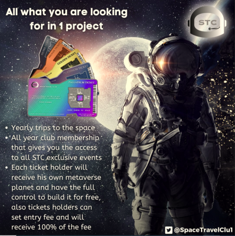 STC does not always give you the ticket that wins. While every ticket keeper is allowed to access all VIP events, however, boarding to space has some special requirements. Fulfilling those requirements means you should be a winner when they draw the tickets of winners after each snapshot. The collection of their tickets is 246 tickets. Out of the 245, tickets will be put on the minting list. Only one Palladium ticket will be presented to the special guest of STC. The following are some ticket types and their chances to board after each snapshot: