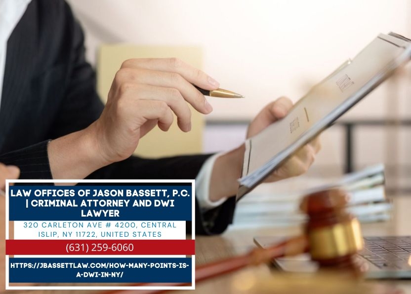 CENTRAL ISLIP, NY – Drivers charged with Driving While Intoxicated in New York face not only criminal penalties but also significant consequences under the state’s driver violation point system. Suffolk County DWI defense attorney Jason Bassett of the Law Offices of Jason Bassett, P.C. (https://jbassettlaw.com/how-many-points-is-a-dwi-in-ny/) explains how a DWI conviction now adds eleven points to a New York driving record and what that means for license status, insurance, and employment.