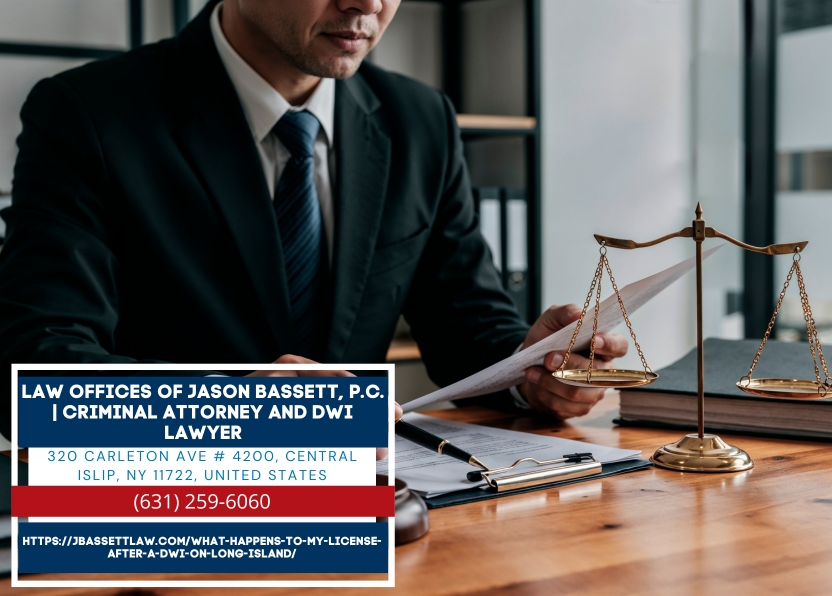 CENTRAL ISLIP, NY – A Driving While Intoxicated conviction in New York carries immediate license consequences that can disrupt employment, daily transportation, and long-term driving privileges for years after the case is resolved. Suffolk County DWI defense attorney Jason Bassett of the Law Offices of Jason Bassett, P.C. (https://jbassettlaw.com/what-happens-to-my-license-after-a-dwi-on-long-island/) is providing guidance on what Long Island drivers should understand about the difference between license suspension and revocation, how long penalties last, and the options available to protect their driving privileges.