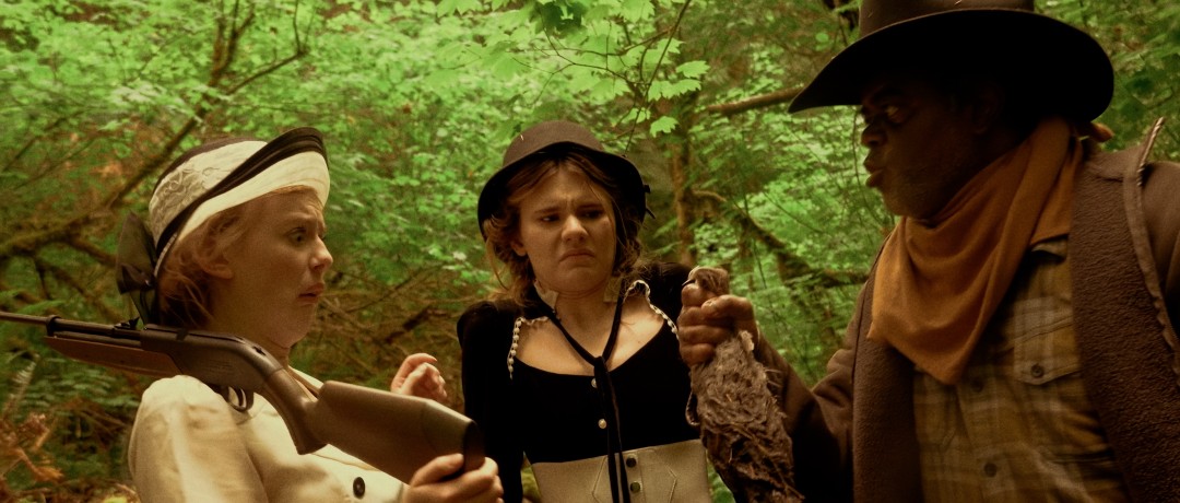 Above: Teddy Smith racing to confront a wild bear in Timothy Hines’ period comedy set in the Pacific Northwest in 1932, The Wilde Girls.
