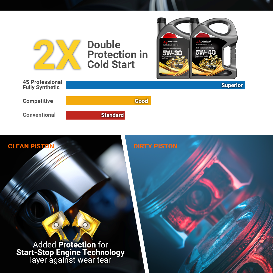 An anonymous quote quipped that “Blood is thicker than water. Your car’s engine oil is even thicker. Cherish your car more than family”. The 4S Professional engine oils were designed for those who cherish their cars, to ensure the best engine performance by decreasing wear and tear up to 20%.