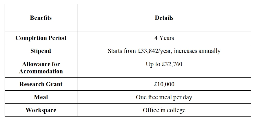 Have a look at other key benefits of St. John’s College Cambridge Research Fellowship.