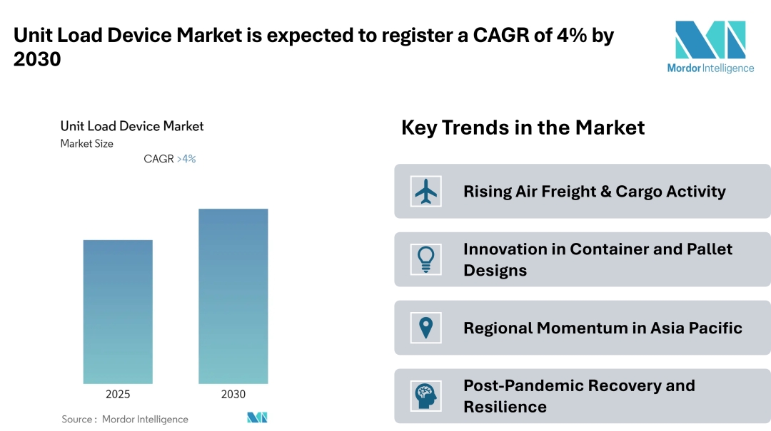 Rising Air Freight & Cargo Activity: As global trade recovers and expands, demand for air cargo is pushing airlines and logistics firms to invest in more, and more efficient, ULDs. The unit load device market trends show that increasing volume of goods shipped by air is a direct driver of ULD growth.