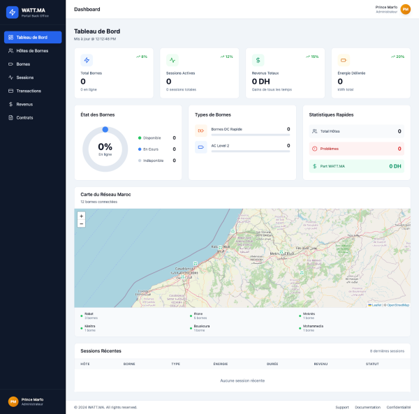 watt.ma is an EV charging SaaS platform and ecosystem in Morocco. Its cloud-based CPMS helps charging operators and site hosts run scalable EV charging networks through real-time monitoring, session and tariff management, automated billing, and operational reporting—improving uptime, transparency, and customer experience.