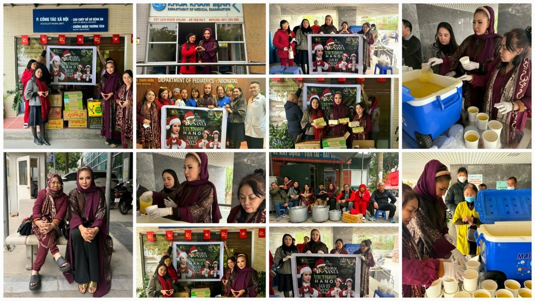 The delegation visited two major hospitals dedicated to cancer treatment in Hanoi. The team distributed vital medicines and food supplies to hundreds of patients, offering not just material aid but a message of solidarity and hope during the season.